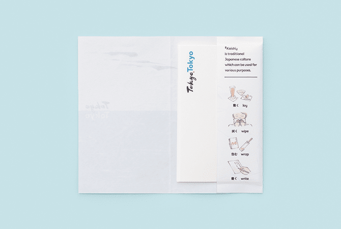 The kaishi, a compact piece of paper carried in a pocket, originates from the Heian period (8th century~12th century) and is dispensable in daily life. Made from the world-famous washi Japanese paper by traditional methods passed down for generations, this kaishi has a variety of uses including holding sweets, wiping ones mouth, wrapping items or writing something. The cover of the kaishi is inlayed with the mark of Ginza's symbolic willow. Get your hands on some kaishi, which represents Japan's exquisite craftwork.