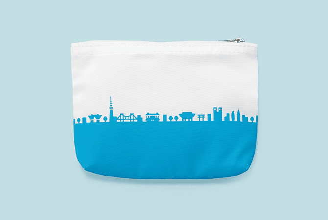 This cosmetic pouch features motifs from the Tokyo skyline. Just the right size for handing out as souvenir gifts. Compact, but plenty of room for lipstick, eye lotion, medication, and more.