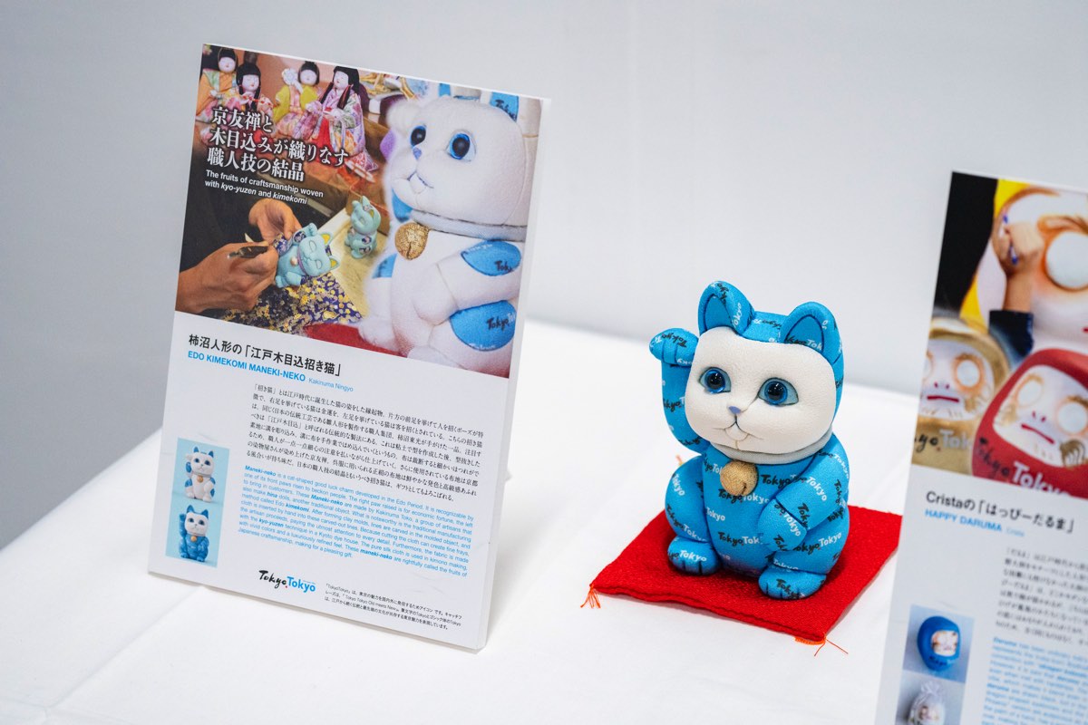 さらに、東京都と民間企業が共同で開発する「東京おみやげ」の紹介コーナーにも、多くの人が集まりました。小紋柄の青海波が使用された扇子「江戸扇子青海波(Tokyo Tokyo Version)」、東京都指定の伝統工芸品「江戸木目込人形」の技術でつくられた「招き猫」など、伝統を取り入れながらもモダンなデザインに仕上がった工芸品や菓子が並び、東京の技巧が発信されました。