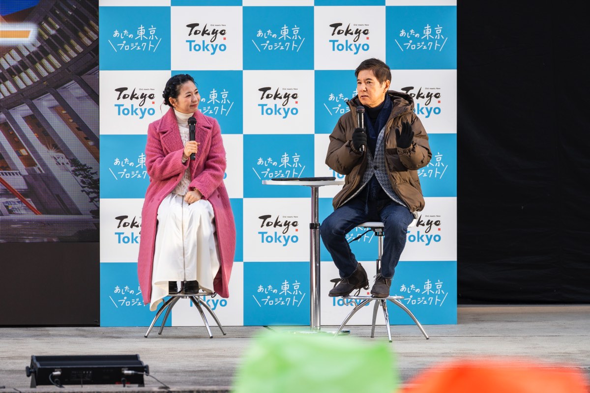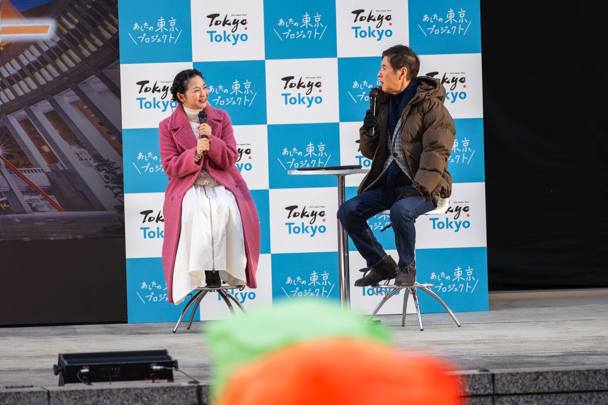 また、東京の魅力を国内外にPRするアイコン「Tokyo Tokyo」の右上に記載される「Old meets New」というスローガンの由来が、江戸から続く「伝統」と最先端の「革新」が共存する街を示しているという説明がMCからされると、二人は時代とともに変化する東京の魅力について思いを述べました。