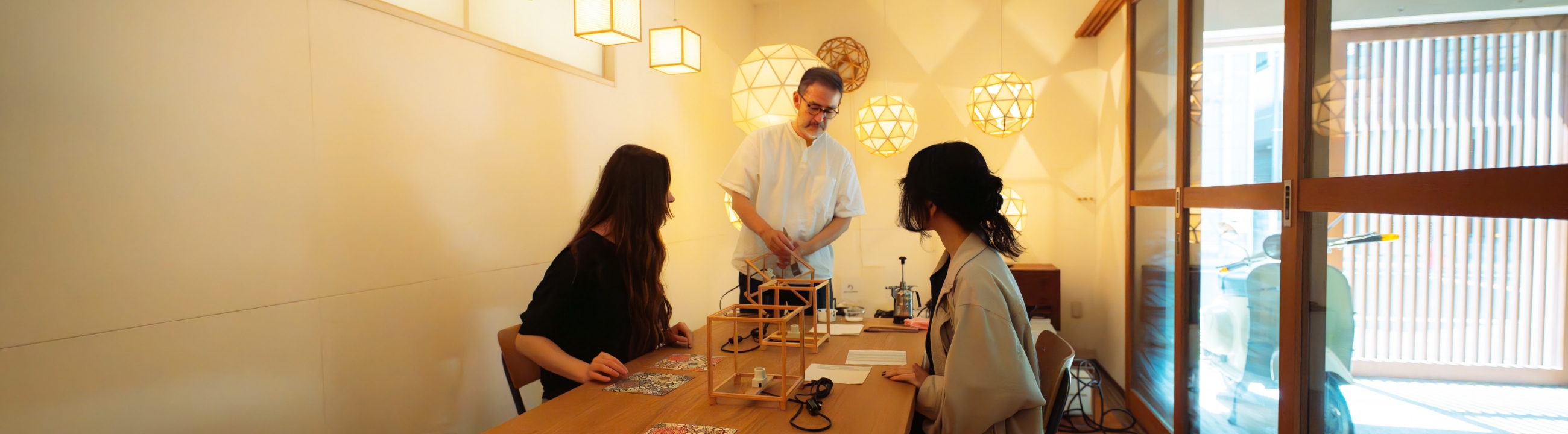 Continue on to Miyako Andon, where you can craft your own Japanese lantern. Once a common fixture used for lighting during the Edo Period, these lamps represent beauty, ingenuity, and humanity’s mastery of light before the advent of electricity. Today, artisans preserve this tradition while blending it with modern sensibilities to fit today’s interior spaces. Bask in the warmth exuded by the natural wood and washi paper as you bring your own piece of history together.
