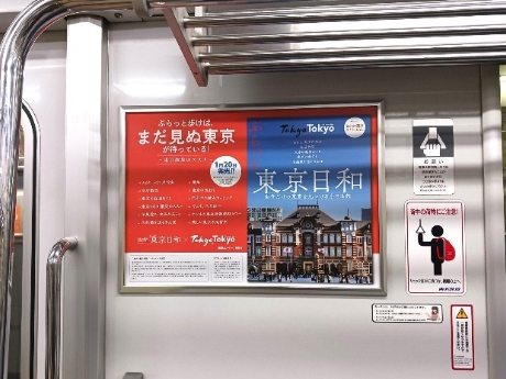 今回のMOOK本の出版に合わせたプロモーションでは、JR池袋駅と東武東上線池袋駅の間に位置する「AZLM TOBU池袋店」にて、店頭に『おとなの週末SPECIAL 「ぶらっと東京日和」』および『おとなの週末』のバックナンバーを掲示。同店外壁のデジタルサイネージにて放映されたTokyo Tokyoのプロモーション映像、東武各線の車両内のポスター掲示と併せ、行き交う人々へ東京の魅力を広く発信しました。